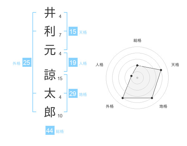 井利元 諒太郎さんを姓名の画数から五運を鑑定