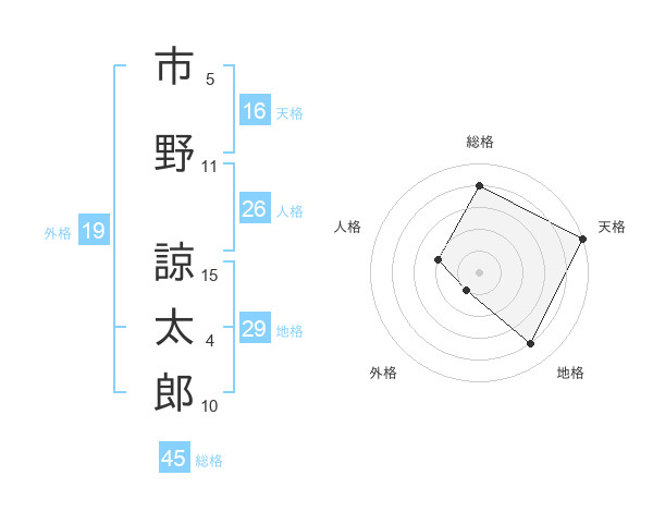 市野 諒太郎さんを姓名の画数から五運を鑑定