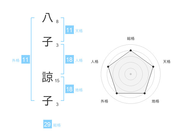 八子 諒子さんの総格は29画の4点!