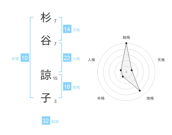 杉谷 諒子さんを姓名の画数から五運を鑑定
