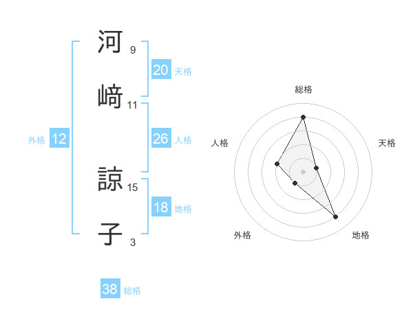 河﨑 諒子さんの総格は38画の4点!