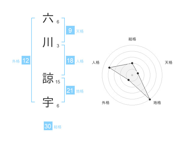 六川 諒宇さんの総格は30画の2点!