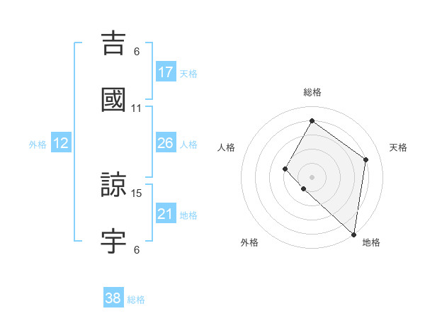 吉國 諒宇さんを姓名の画数から五運を鑑定