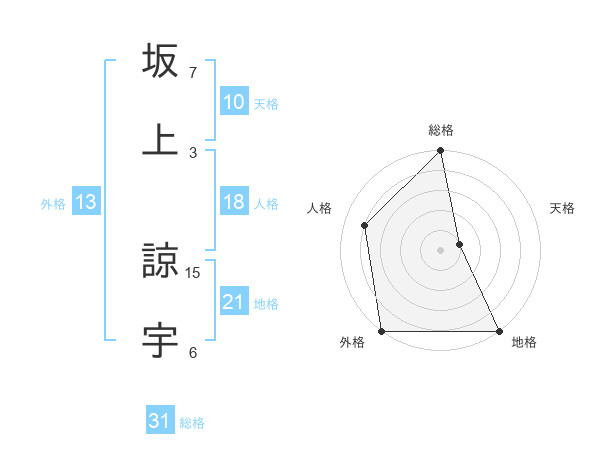 坂上 諒宇さんの総格は31画の5点!