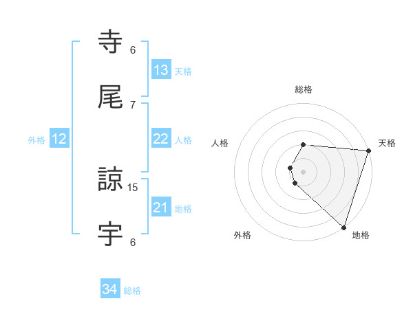 寺尾 諒宇さんの地格は21画の5点!