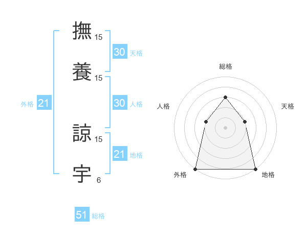 撫養 諒宇さんの総格は51画の3点!
