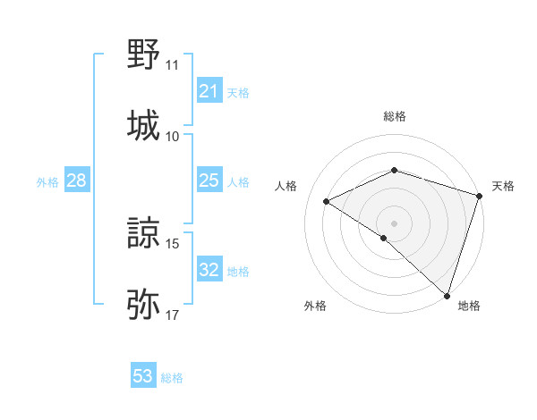 野城 諒弥さんを姓名の画数から五運を鑑定