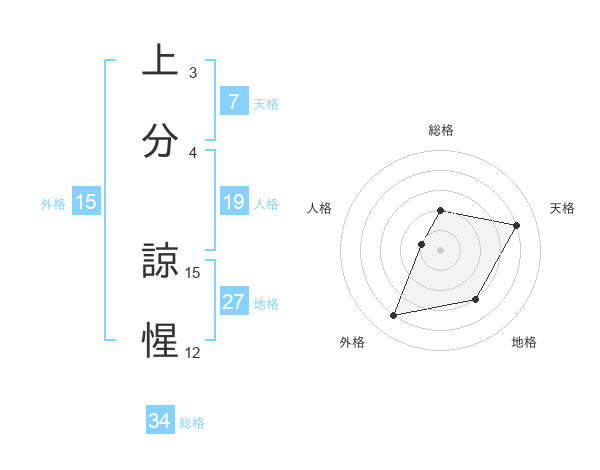 上分 諒惺さんを姓名の画数から五運を鑑定