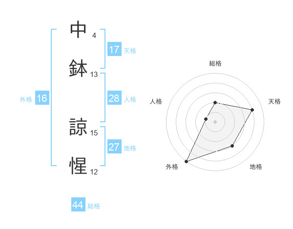 中鉢 諒惺さんの天格は17画の4点!