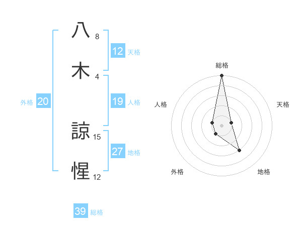 八木 諒惺さんの総格は39画の5点!