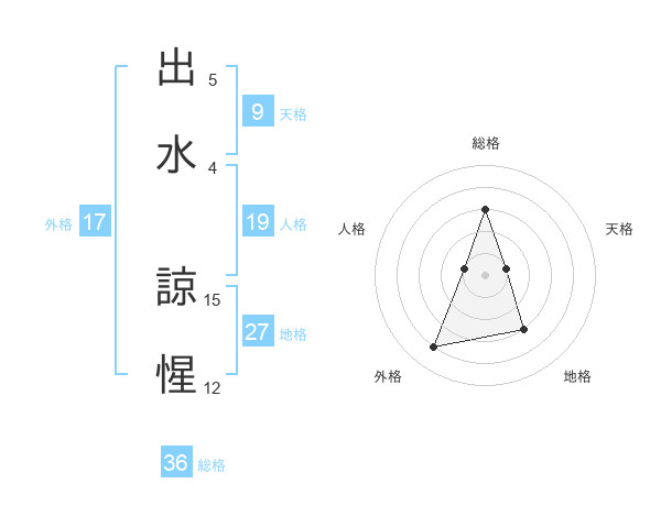 出水 諒惺さんを姓名の画数から五運を鑑定