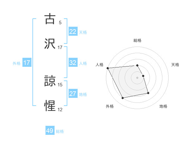 古沢 諒惺さんの総格は49画の2点!
