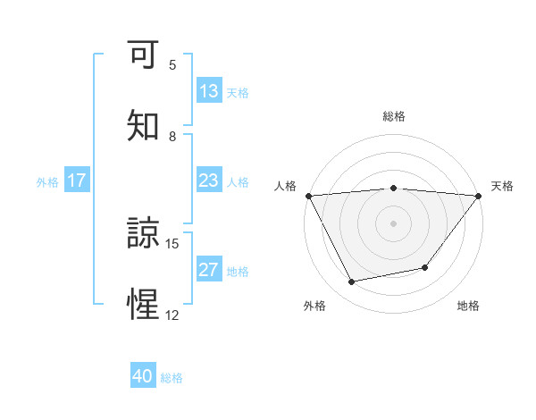 可知 諒惺さんを姓名の画数から五運を鑑定