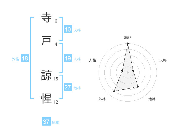 寺戸 諒惺さんの総格は37画の5点!