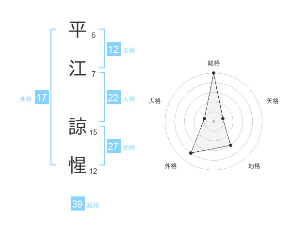 平江 諒惺さんの総格は39画の5点!