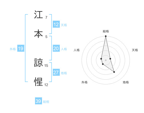江本 諒惺さんを姓名の画数から五運を鑑定