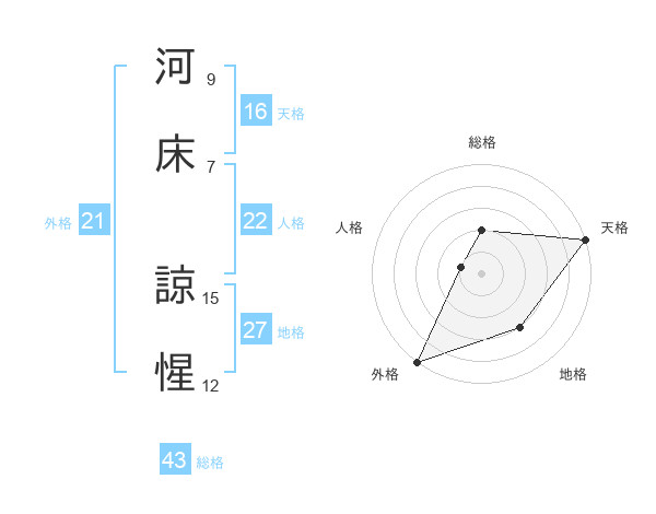 河床 諒惺さんを姓名の画数から五運を鑑定