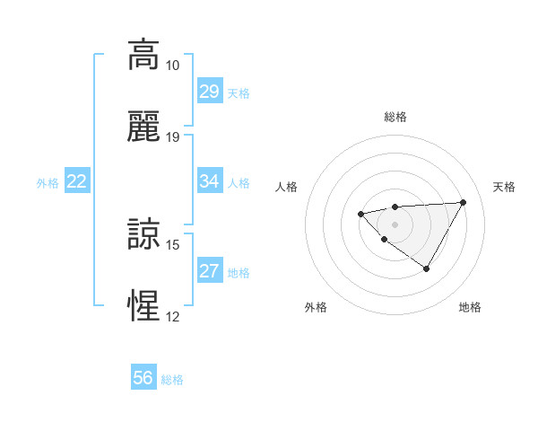 高麗 諒惺さんの総格は56画の1点!