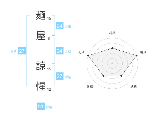 麺屋 諒惺さんを姓名の画数から五運を鑑定