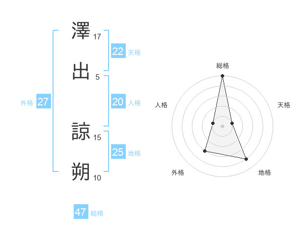 澤出 諒朔さんを姓名の画数から五運を鑑定
