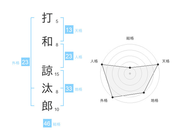 打和 諒汰郎さんを姓名の画数から五運を鑑定