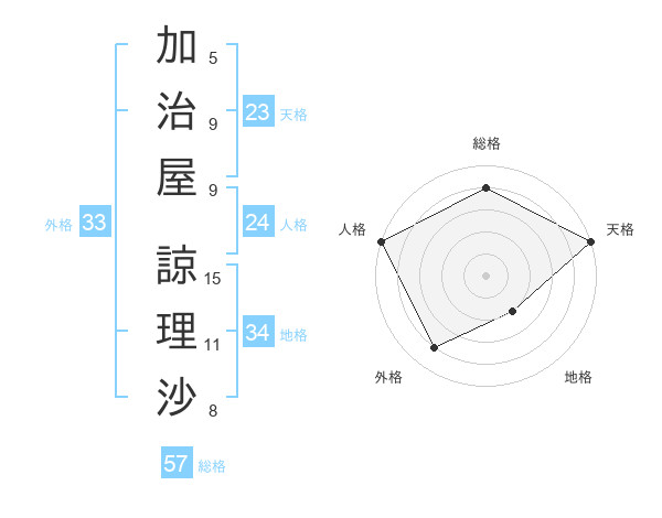 加治屋 諒理沙さんを姓名の画数から五運を鑑定