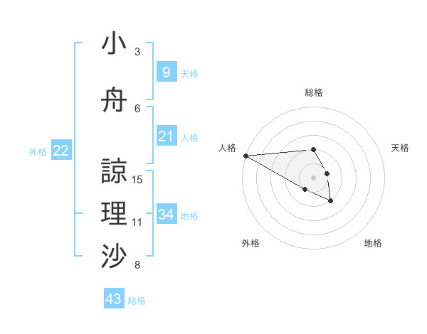 小舟 諒理沙さんを姓名の画数から五運を鑑定