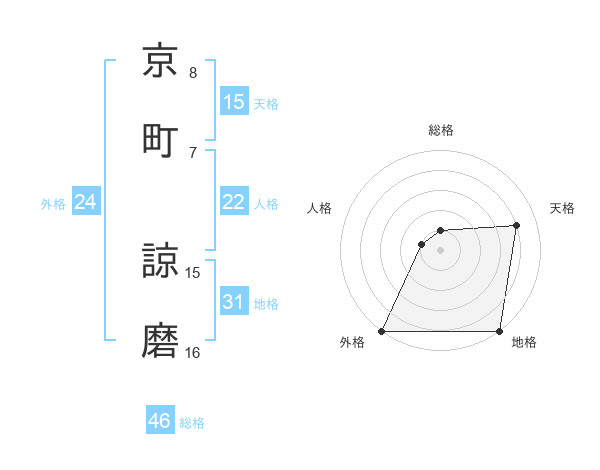 京町 諒磨さんの天格は15画の4点!
