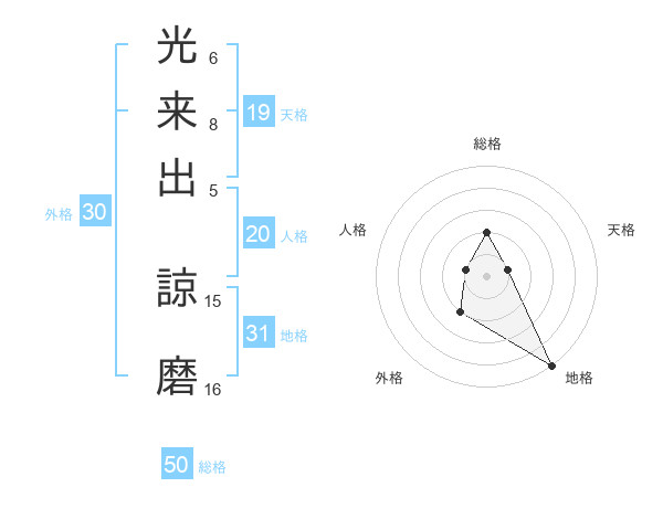 光来出 諒磨さんの総格は50画の2点!
