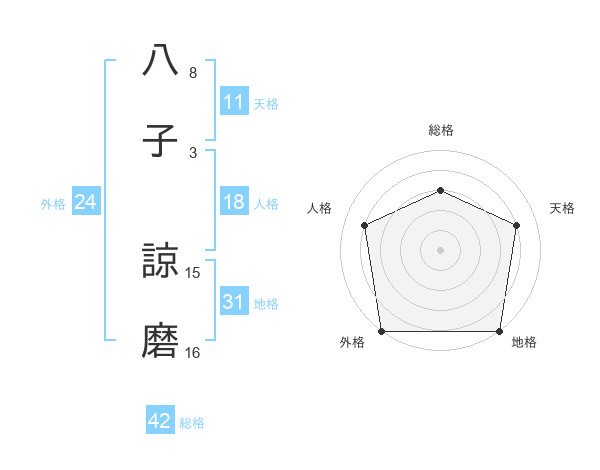 八子 諒磨さんの総格は42画の3点!