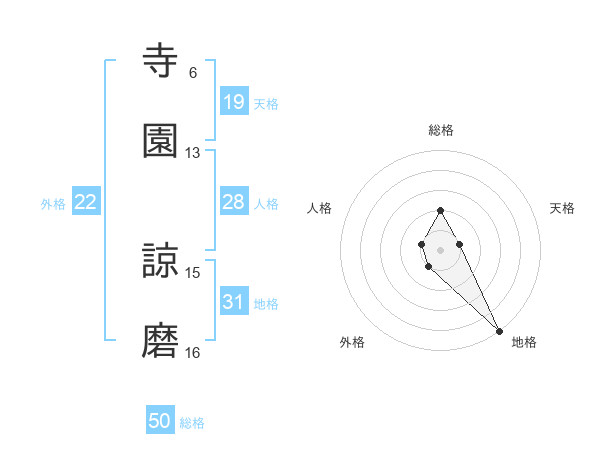 寺園 諒磨さんを姓名の画数から五運を鑑定