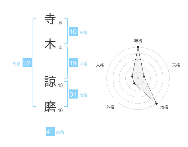 寺木 諒磨さんの地格は31画の5点!