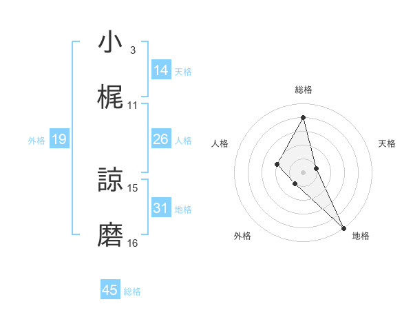 小梶 諒磨さんを姓名の画数から五運を鑑定