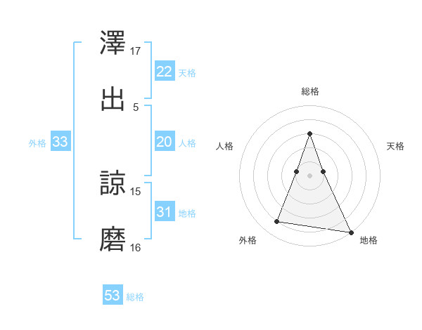 澤出 諒磨さんの天格は22画の1点!