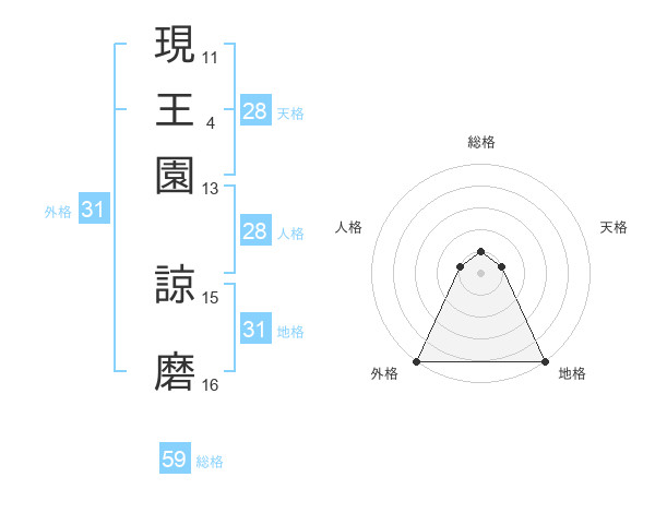 現王園 諒磨さんの総格は59画の1点!