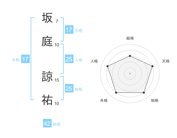 坂庭 諒祐さんの総格は42画の3点!