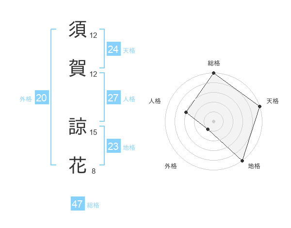 須賀 諒花さんの総格は47画の5点!