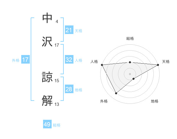中沢 諒解さんを姓名の画数から五運を鑑定