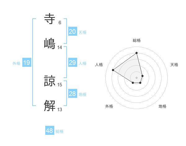 寺嶋 諒解さんを姓名の画数から五運を鑑定
