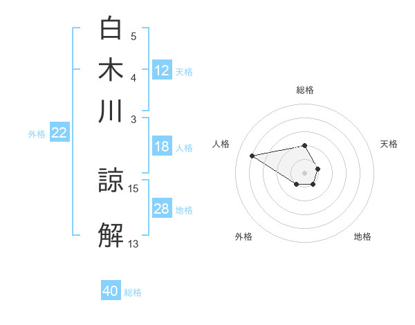 白木川 諒解さんを姓名の画数から五運を鑑定