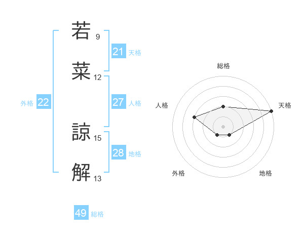 若菜 諒解さんを姓名の画数から五運を鑑定