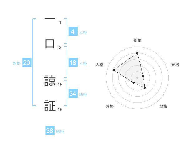 一口 諒証さんの総格は38画の4点!