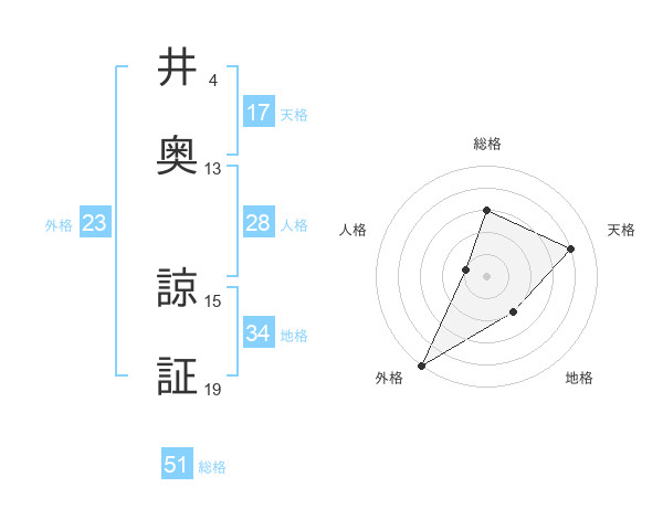 井奥 諒証さんを姓名の画数から五運を鑑定