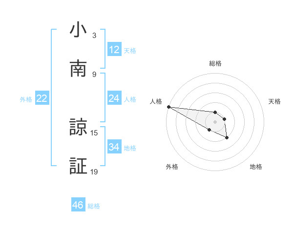 小南 諒証さんの天格は12画の1点!