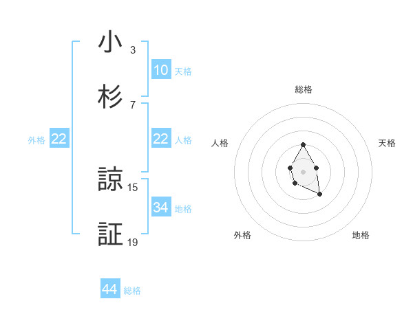 小杉 諒証さんを姓名の画数から五運を鑑定