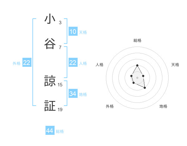 小谷 諒証さんを姓名の画数から五運を鑑定