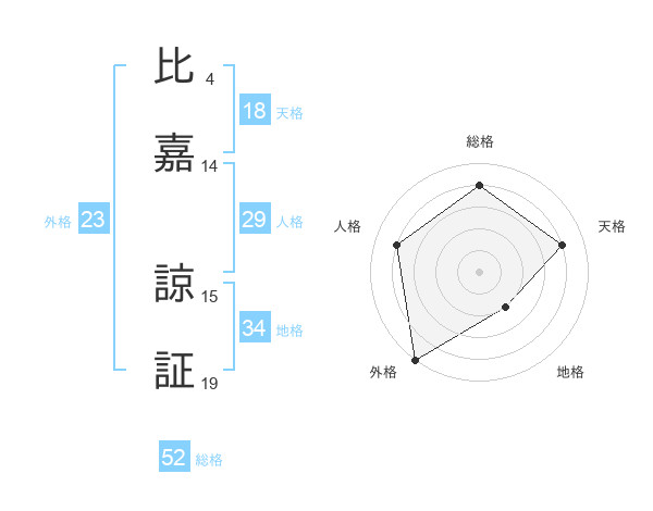 比嘉 諒証さんの総格は52画の4点!