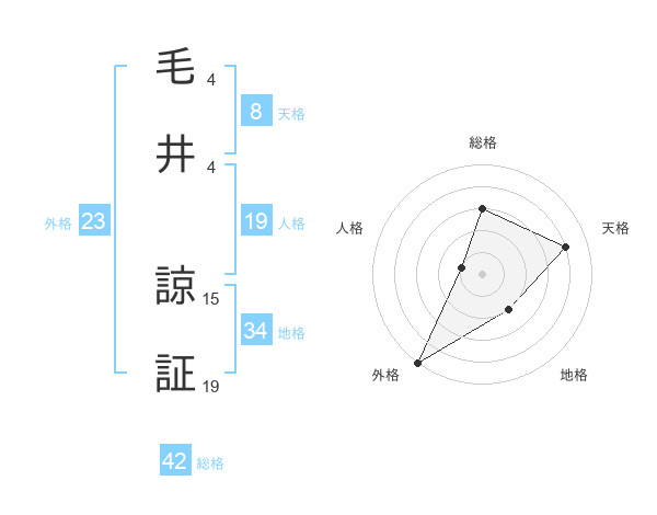 毛井 諒証さんを姓名の画数から五運を鑑定