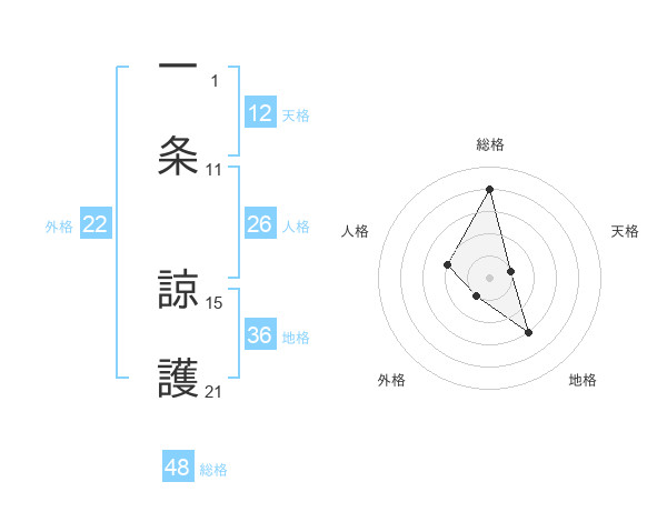 一条 諒護さんの天格は12画の1点!
