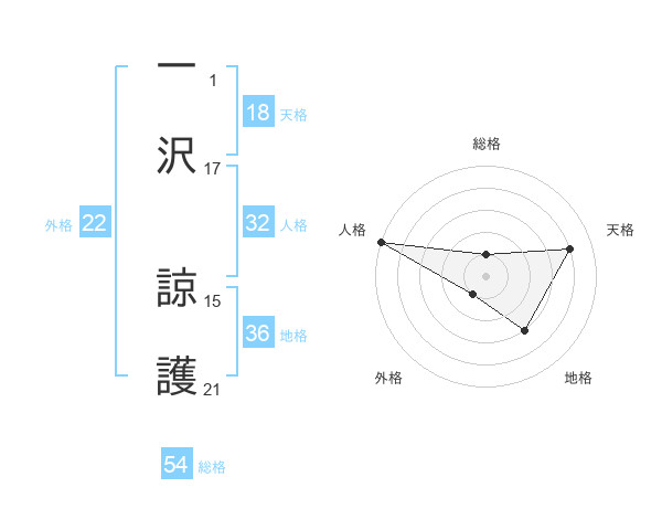 一沢 諒護さんの総格は54画の1点!